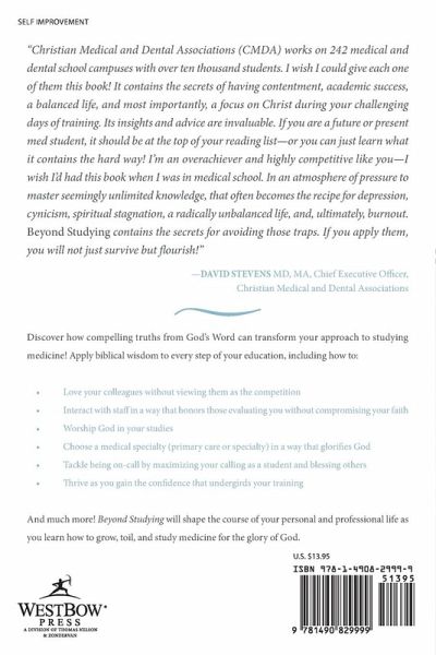 Transform your approach to studying medicine. Discover how to apply Biblical wisdom to every step of your education, including how to: * Love your colleagues without viewing them as the competition * Interact with staff in a way that honors those evaluating you without compromising your faith * Worship God in your studies * Choose your medical specialty in a way that glorifies God * Tackle being on-call by maximizing your calling as a student and blessing others * Thrive as you gain the confidence that undergirds your training And much more. Beyond Studying will shape the course of your personal and professional life as you learn how to grow, toil, and study medicine for the glory of God. Follow us on facebook at facebook.com/BeyondStudying.