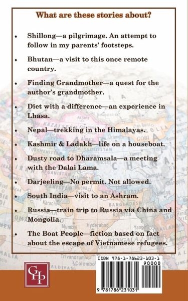 Beyond Suez is a collection of stories from Meg Drummond Ross, this intrepid traveller. So what are they about? * Shillong-a pilgrimage. An attempt to follow in my parent's footsteps. * Bhutan-a visit to this once remote country. * Finding Grandmother-a quest for the author's grandmother. * Diet with a difference-an experience in Lhasa. * Nepal-trekking in the Himalayas. * Kashmir & Ladakh-life on a houseboat. * Dusty road to Dharamsala-a meeting with the Dalai Lama. * Darjeeling-No permit. Not allowed. * South India-visit to an Ashram. * Russia- a train trip to Russia via China and Mongolia. * The Boat People-fiction based on fact about the escape of Vietnamese refugees.