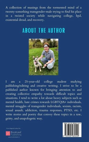 A collection of musings from the tormented mind of a twenty-something transgender-male trying to find his place in a twisted society while navigating college, bpd, existential dread, and recovery.