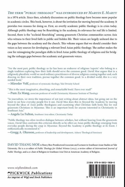 The term "public theology" was introduced by Martin E. Marty in a 1974 article. Since then, scholarly discussions on public theology have become more popular in academic circles. This book, however, is about the invitation for moving beyond the academy. It provides two reasons for doing so. First, an overtly academic public theology is in crisis today. Although public theology may be flourishing in the academy, its relevance for real life is limited. Second, there is the "ecclesial flourishing" among grassroots Christian communities across Asia who witness to their lived faith in public and hidden life. Their voices are largely unheard due to the gaps between the academy and the church. This volume argues that we should consider their voices as key sources for developing a relevant lived Asian public theology. The author makes the case for reimagining the paradigm shifts in lived Asian public theology of religions and for bridging the unhappy gaps between the academic and grassroots voices.