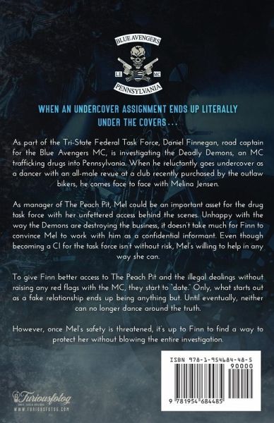 When an undercover assignment ends up literally under the covers... As part of the Tri-State Federal Task Force, Daniel Finnegan, road captain for the Blue Avengers MC, is investigating the Deadly Demons, an MC trafficking drugs into Pennsylvania. When he reluctantly goes undercover as a dancer with an all-male revue at a club recently purchased by the outlaw bikers, he comes face to face with Melina Jensen. As manager of The Peach Pit, Mel could be an important asset for the drug task force with her unfettered access behind the scenes. Unhappy with the way the Demons are destroying the business, it doesn't take much for Finn to convince Mel to work with him as a confidential informant. Even though becoming a CI for the task force isn't without risk, Mel's willing to help in any way she can. To give Finn better access to The Peach Pit and the illegal dealings without raising any red flags with the MC, they start to "date." Only, what starts out as a fake relationship ends up being anything but. Until eventually, neither can no longer dance around the truth. However, once Mel's safety is threatened, it's up to Finn to find a way to protect her without blowing the entire investigation. Note: Beyond the Badge: Finn is the second book in the Blue Avengers MC series. It's HIGHLY recommended to read this six-book action/adventure series in order due to the continuing story arcs (subplots). However, each book focuses on a different couple who gets their HEA. This series has no cheating or relationship cliffhangers.
