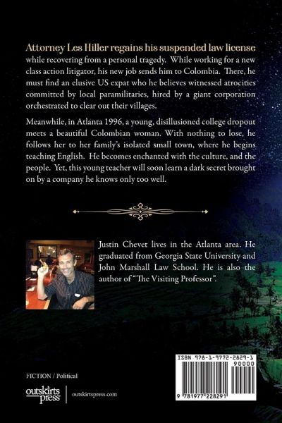 In this spellbinding novel, a recently reinstated attorney, working for a famous litigator travel to Colombia in search of an elusive US expat who may have witnessed massacres committed my paramilitaries hired by a famous corporation. When their paths cross, a dark secret is revealed, and both of their life trajectories are forever changed.