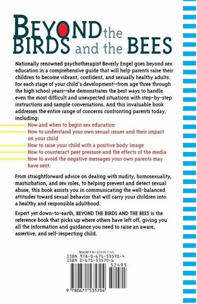 A guide to healthy sexual development for children, covering topics that include promoting positive body images, protecting children without scaring them, and teaching values without encouraging rebellion. Nationally renowned psychotherapist Beverly Engel goes beyond sex education in a comprehensive guide that will help parents raise their children to become vibrant, confident, and sexually healthy adults. For each stage of your child’s development—from age three through the high school years—she demonstrates the best ways to handle even the most difficult and unexpected situations with step-by-step instructions and sample conversations. From straightforward advice on dealing with nudity, homosexuality, masturbation, and sex roles, to helping prevent and detect sexual abuse, this book assists you in communicating the well-balanced attitudes toward sexual behavior that will carry your children into a healthy and responsible adulthood.