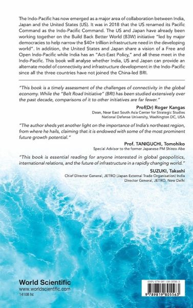 The Indo-Pacific has now emerged as a major area of collaboration between India, Japan and the United States (US). It was in 2018 that the US renamed its Pacific Command as the Indo-Pacific Command. The US and Japan have already been working together on the Build Back Better World (B3W) initiative "led by major democracies to help narrow the $40+ trillion infrastructure need in the developing world". In addition, the United States and Japan share a vision of a Free and Open Indo-Pacific while India has an "Act-East Policy," and all these meet in the Indo-Pacific. This book will analyse whether India, US and Japan can provide an alternate model of connectivity and infrastructure development in the Indo-Pacific since all the three countries have not joined the China-led BRI.