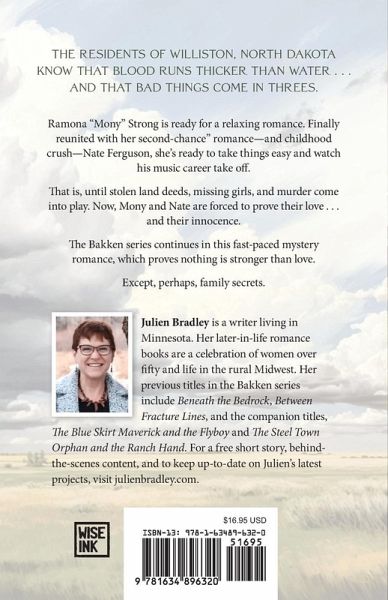 The residents of Williston, North Dakota know that blood runs thicker than water . . . and that bad things come in threes. The Bakken series continues in this fast-paced mystery romance, which proves nothing is stronger than love (except, perhaps, family secrets). Ramona "Mony" Strong is ready for a low-stress romance. Finally reunited with her "second-chance" romance-and childhood crush-Nate Ferguson, she's ready to take things easy and watch his music career take off. That is, until stolen land deeds, missing girls, and murder come into play. Now, Mony and Nate are forced to prove their love . . . and their innocence. This multiple POV drama brings back Bakken series fan favorites, including Mony's former fling John, an oil company lawyer whose moves are as slick as the companies he represents. Fans of the series and steamy romance novels can look forward to a: ¿ later in life romance that goes beyond "cougar getting the cabana boy," ¿ complicated family dynamics and shifting loyalties, ¿ stunning landscapes and a fast-paced, character-driven plot, ¿ and an 8/10 spice level. Fans of Tex by Liz Issacson, The Gift at Sugar Sand Inn by Leigh Duncan, and the scintillating scenes of Sylvia Day's Crossfire series will love this latest addition to Julien Bradley's Bakken series. Julien's Bradley's Bakken series is known for bringing mystery, intrigue, and the chemistry of steamy romance novels to a trope-breaking style where happy endings are never guaranteed. When loyalties falter, will love remain?