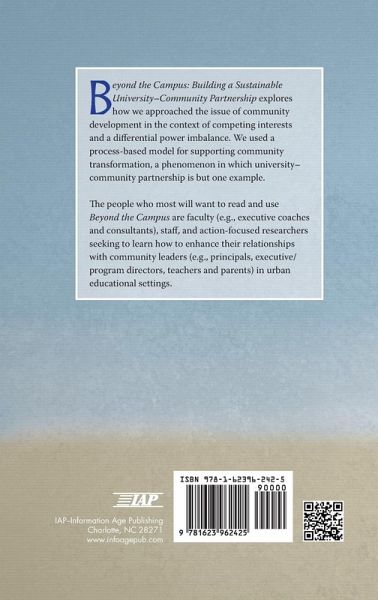 This book explores how we approached the issue of community development in the context of competing interests and a differential power imbalance. We used a process-based model for supporting community transformation, a phenomenon in which university-community partnership is but one example. The people who most will want to read and use Beyond the Campus are faculty, action-focused researchers and executive coaches and consultants seeking to learn how to enhance their relationships with community leaders (e.g., principals, executive/program directors, teachers and parents) in urban educational settings.