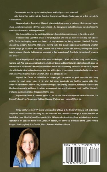 Can memories hold the key to unlocking hearts and finding uncommon heroes? After losing their mothers at six, Gretchen Gardener and Hayden Tucker grew up to find Love at the Center of Grief. Welcome back to Summerfort, Missouri, where the holiday season is underway. Gretchen and Hayden share something in common with their widowed dads-the dating scene. But did their dads have to choose the counselors from school and the grief center? Can this small town on the outskirts of Branson deal with this much romance in the midst of grief? Gretchen writes Dear Mom entries in her grief journal. She tells her mom she's dealing well with her OCD. But is she keeping secrets too deep to tell anyone-even her loving boyfriend, Hayden? Gretchen obsessively compares herself to others while reliving hurts. The lovingly creative and overthinking Gretchen cannot always get out of her own head. Gretchen's on a collision course with jealousy, desiring what others take for granted. Can she find the recipe she needs to fight against envy? Or will she risk cutting off everyone she loves? Inside his grief journal, Hayden writes his mom. He hopes to rebuild the broken family bonds, removing fear and guilt. And he's concerned his Summerfort Grief Center world might stumble into his home life since his dad now dates the founder. Hayden also wishes to understand the meaning between a secret and a surprise since his family might be keeping things from him. Will he jump to conclusions, unraveling family secrets and memories? And if secrets involve Gretchen, when is he obligated to tell? Beyond the Center of Grief offers an unapologetic perspective of grief, complete with every emotion. No exact recipe exists to fix grief, but some ingredients are healthier coping skills than others. In Beyond the Center of Grief, inspiration emerges from unlikely characters, narrated by Gretchen and Hayden with empathy and humor. It delivers a message of friendship, forgiveness, family, and fun. Ultimately, it's taking a walk with another through grief to find hope. Beyond the Center of Grief will appeal to fans of Julie Buxbaum's Hope and Other Punchlines, Val Emmich's Dear Evan Hansen, and Kathleen Glasgow. It's like a teen version of This is Us.