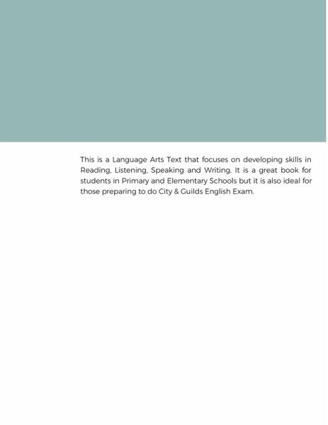 This is a Language Arts Text that focuses on developing skills in Reading, Listening, Speaking and Writing. It is a great book for students in Primary and Elementary Schools but it is also ideal for those preparing to do City & Guilds English Exam. About the Author The author is a trained experienced educator who have worked at various levels in the Education system. She holds a Masters Degree in Curriculum and Instructions, a Bsc in Business Administration and a Dip. in Primary Education.