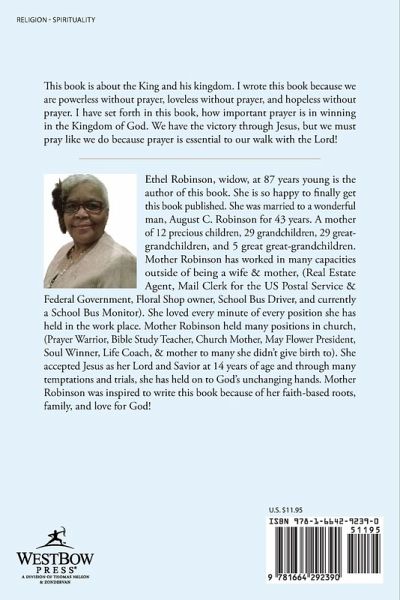 This book is about the King and his kingdom. I wrote this book because we are powerless without prayer, loveless without prayer, and hopeless without prayer. I have set forth in this book, how important prayer is in winning in the Kingdom of God. We have the victory through Jesus, but we must pray like we do because prayer is essential to our walk with the Lord!