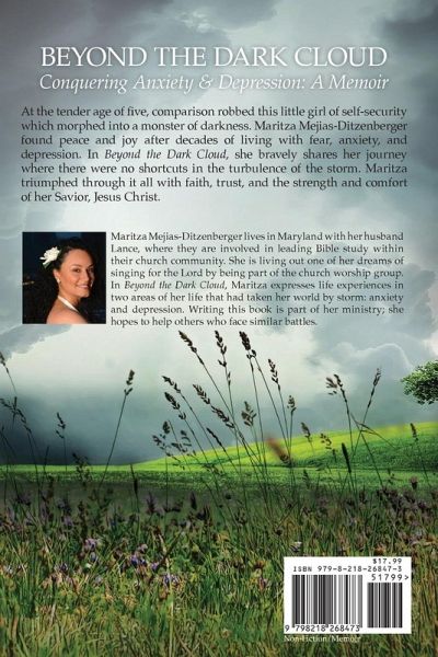 At the tender age of five, comparison robbed this little girl of self-security which morphed into a monster of darkness. Maritza Mejias-Ditzenberger found peace and joy after decades of living with fear, anxiety, and depression. In Beyond the Dark Cloud, she bravely shares her journey where there were no shortcuts in the turbulence of the storm. Maritza triumphed through it all with faith, trust, and the strength and comfort of her Savior, Jesus Christ.