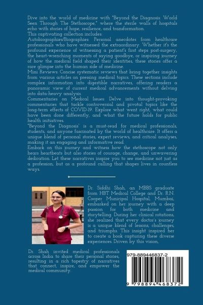 Dive into the world of medicine with "Beyond the Diagnosis: World Seen Through The Stethoscope," where the sterile walls of hospitals echo with stories of hope, resilience, and transformation. This captivating collection includes: Autobiographies/Biographies: Personal anecdotes from healthcare professionals who have witnessed the extraordinary. Whether it's the profound experience of witnessing a patient's first steps post-surgery, the heart-wrenching moments of saying goodbye, or inspiring journey of how the medical field shaped their identities, these stories offer a rare glimpse into the human side of medicine. Mini Reviews: Concise systematic reviews that bring together insights from various articles on pressing medical topics. These sections include complex information into digestible narratives, offering readers a panoramic view of current medical advancements without delving into data-heavy analysis. Commentaries on Medical Issues: Delve into thought-provoking commentaries that tackle controversial and pivotal topics like the long-term effects of COVID-19. Explore what went right, what could have been done differently, and what the future holds for public health initiatives. "Beyond the Diagnosis" is a must-read for medical professionals, students, and anyone fascinated by the world of healthcare. It offers a unique blend of personal stories, expert reviews, and critical analyses, making it an engaging and informative read.