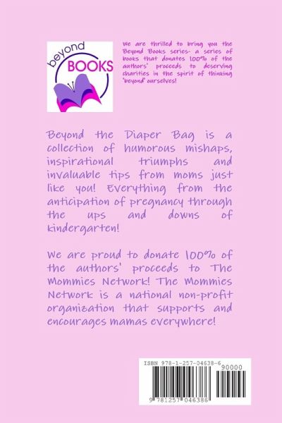 Beyond the Diaper Bag is the second book in the Beyond Books series. It is full of humorous mishaps, inspirational stories and invaluable tips from real moms. Beyond the Diaper Bag covers all topics from pregnancy through kindergarten. We are proud to donate 100%% of the authors' proceeds to The Mommies Network, a national non-profit charity.