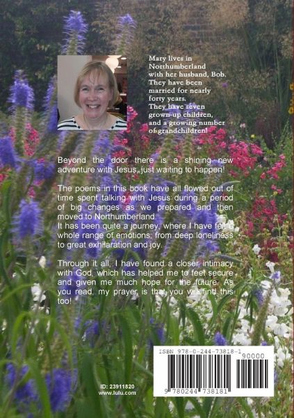 Beyond the Door explores our inner garden, through personal poems written during time spent in God's presence. It offers hope for the future as we come closer to Jesus and understand more about God's love. This is Mary's second poetry book expressing some of her emotions and feelings as she and her husband moved to a small village in Northumberland. Themes include Heart changes, Worship, Family, The Inner garden, Stories about Jesus and Coming Home. Beyond the door there is a shining new adventure with Jesus, just waiting to happen for you!