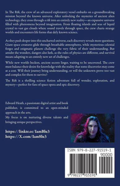 In The Rift, the crew of an advanced exploratory vessel embarks on a groundbreaking mission beyond the known universe. After unlocking the mysteries of ancient alien technology, they cross through a rift into an entirely new reality-an expansive universe filled with phenomena beyond imagination. From floating islands and seas of liquid crystal to vast gas clouds where sound travels through space, the crew charts strange worlds and encounters life forms that defy known science. As they push deeper into this uncharted universe, each discovery reveals more questions. Giant space creatures glide through breathable atmospheres, while mysterious celestial forges and enigmatic planets challenge the very fabric of their understanding. But amidst the wonders, dangers also lurk, as the rules of physics are different, and survival means adapting to an entirely new set of challenges. While new worlds beckon, ancient secrets linger, waiting to be uncovered. The crew must balance their desire for knowledge with the reality that some discoveries may come at a cost. Will their journey bring understanding, or will the unknown prove too vast and complex for them to survive? The Rift is a thrilling science fiction adventure full of wonder, exploration, and mystery-perfect for fans of space opera and epic discovery.