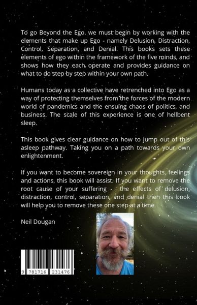 To go Beyond the Ego, we must begin by working with the elements that make up Ego - namely Delusion, Distraction, Control, Separation, and Denial. This books sets these elements of ego within the framework of the five minds, and shows how they each operate and provides guidance on what to do step by step within your own path. Humans today as a collective have retrenched into Ego as a way of protecting themselves from the forces of the modern world of pandemics and the ensuing chaos of politics, and business. The scale of this experience is one of hellbent sleep. This book gives clear guidance on how to jump out of this asleep pathway. Taking you on a path towards your own enlightenment. If you want to become sovereign in your thoughts, feelings and actions, this book will assist. If you want to remove the root cause of your suffering - the effects of delusion, distraction, control, separation, and denial then this book will help you to remove these one step at a time.