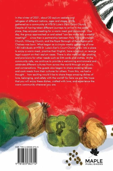 In the winter of 2021, about 20 asylum seekers and refugees of different nations, ages and stages of life, gathered as a community at HTB St Luke's Earls Court Church. Despite all having taken different journeys to arrive in the same place, they enjoyed meeting for a warm meal and community. One day, the group approached us and asked "can we make this a weekly meeting?"... Since then a partnership between Holy Trinity Brompton Church, Hillsong Church, and the Royal Borough of Kensington and Chelsea was born. What began as a simple weekly gathering of over 150 individuals at HTB St. Luke's Earl's Court Church grew into a place to enjoy a warm meal, practice their English, have a haircut, or receive legal support on their asylum cases. There is also medical sign posting and provisions for other needs such as SIM cards and clothes. At the community cafe, we continue to provide a welcoming environment and celebrate different cultures from across the world through art, music, and conversations. The guests also began to share amazing recipes and cook meals from their cultures for others. From this, we had a thought... how exciting would it be to share these amazing dishes of love, belonging, and safety with the world? So here we are! We hope that you will enjoy these dishes, crafted with love, and experience the warm community wherever you are.