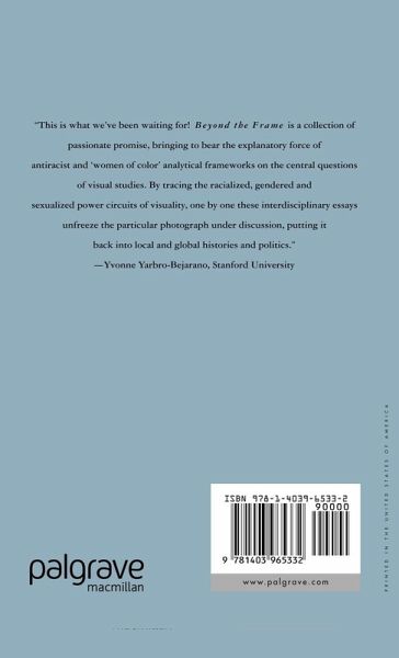 Beyond the Frame explores the importance of visual images in the identities and material conditions of women of color as they relate to social power, oppression, and resistance. The goal of the collection is to rethink the category of visual theory through women of color. It also explores the political and social ramifications of visual imagery for women of color, and the political consciousness that can emerge alongside a critical understanding of the impact of visual imagery. The book begins with a general exploration of what it means to develop a women of color criticism (rather than an analysis of women of color), and goes on to look specifically at topics such as 90s fashion advertisements, the politics of cosmetic surgery, and female fans of East LA rock bands.