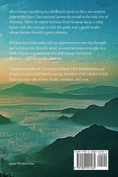 After losing everything in a foolhardy quest to slay a sea serpent, Eske of the Bear Clan journeys across the world to the holy city of Phyreios. There, he meets warriors from faraway lands, a rebel leader with the courage to defy the gods, and a gentle healer whose dreams foretell a great calamity. While at first Eske seeks only an opportunity to test his strength and a distraction from his grief, he soon becomes entangled in a clash of gods and monsters that will change the fate of Phyreios-and the world-forever. Inspired by Robert E. Howard's CONAN THE BARBARIAN and Ursula LeGuin's EARTHSEA novels, BEYOND THE FROST-COLD SEA is an epic tale of love, loyalty, rebellion, and ruin.
