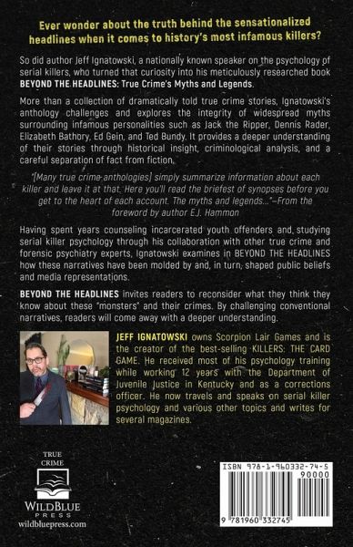 Ever wonder about the truth behind the sensationalized headlines when it comes to history's most infamous killers? So did author Jeff Ignatowski, a nationally known speaker on the psychology of serial killers, who turned that curiosity into his meticulously researched book BEYOND THE HEADLINES: True Crime's Myths and Legends. More than a collection of dramatically told true crime stories, Ignatowski's anthology challenges and explores the integrity of widespread myths surrounding infamous personalities such as Jack the Ripper, Dennis Rader, Elizabeth Bathory, Ed Gein, and Ted Bundy. It provides a deeper understanding of their stories through historical insight, criminological analysis, and a careful separation of fact from fiction. "[Many true crime anthologies] simply summarize information about each killer and leave it at that. Here you'll read the briefest of synopses before you get to the heart of each account. The myths and legends..." -From the foreword by author E.J. Hammon Having spent years counseling incarcerated youth offenders and studying serial killer psychology through his collaboration with other true crime and forensic psychiatry experts, Ignatowski examines in BEYOND THE HEADLINES how these narratives have been molded by and, in turn, shaped public beliefs and media representations. BEYOND THE HEADLINES invites readers to reconsider what they think they know about these "monsters" and their crimes. By challenging conventional narratives, readers will come away with a deeper understanding.