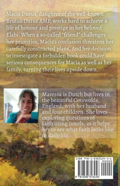 Macia Durus, daughter of the well known Brutus Durus AMP, works hard to achieve a life of honour and prestige in her beloved Elabi. When a so-called "friend" challenges her priorities, Macia's confusion threatens her carefully constructed plans. And her decision to investigate a forbidden book could have serious consequences for Macia as well as her family, turning their lives upside down.