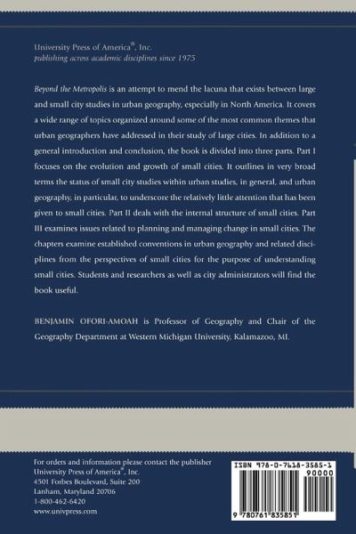 Beyond the Metropolis is an attempt to mend the lacuna that exists between large and small city studies in urban geography, especially in North America. It covers a wide range of topics organized around some of the most common themes that urban geographers have addressed in their study of large cities. In addition to a general introduction and conclusion, the book is divided into three parts. Part I focuses on the evolution and growth of small cities.