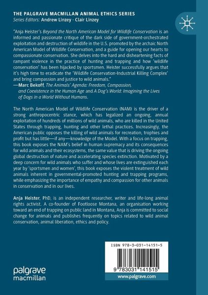 The North American Wildlife Conservation Model (NAM) is the driver of a strong anthropocentric stance, which has legalized an ongoing, annual exploitation of hundreds of millions of wild animals, who are killed in the United States through trapping, hunting and other lethal practices. Increasingly, the American public opposes the killing of wild animals for recreation, trophies and profit but has little-if any-knowledge of the Model. The purpose of this book is to empower the public with knowledge about the NAM's insufficiencies and to help expedite the shift from lethal to compassionate conservation, an endeavour urgently needed particularly under the threats of climate change, human population growth and accelerating plant and animal species extinctions.