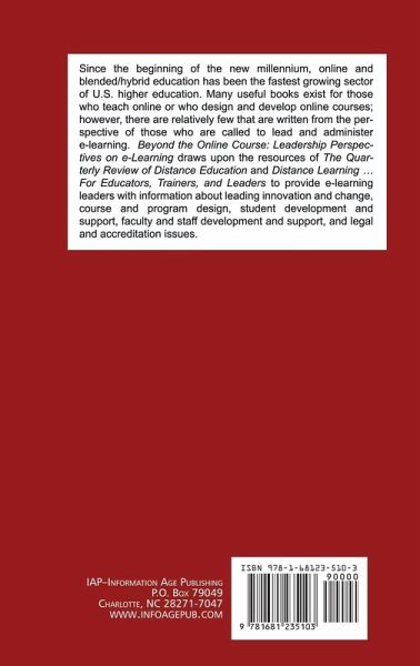 A volume in Perspectives in Instructional Technology and Distance Education Beyond the Online Course: Leadership Perspectives on e-Learning addresses a need for the growing body of professionals who are called upon to lead the online/distance learning efforts at their various organizations. It will also be of interest to those wishing to prepare for leadership positions or who are engaged in research and study of issues "beyond the online course." The book brings together scholarly and practice-based writings from the pages of the Quarterly Review of Distance Education and Distance Learning for Educators, Trainers and Leaders.