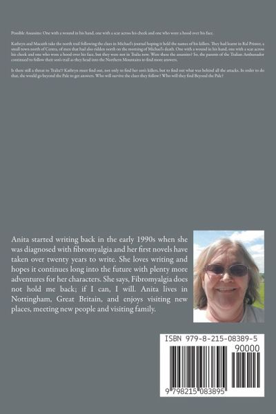 Possible Assassins: One with a wound in his hand, one with a scar across his cheek and one who wore a hood over his face. Kathryn and Macaith take the north trail following the clues in Michael's journal hoping it held the names of his killers. They had learnt in Ral Printer, a small town north of Centra, of men that had also ridden north on the morning of Michael's death. One with a wound in his hand, one with a scar across his cheek and one who wore a hood over his face, but they were not in Tralia now. Were these the assassins? So, the parents of the Tralian Ambassador continued to follow their son's trail as they head into the Northern Mountains to find more answers. Is there still a threat to Tralia!? Kathryn must find out, not only to find her son's killers, but to find out what was behind all the attacks. In order to do that, she would go beyond the Pale to get answers. Who will survive the clues they follow? Who will they find Beyond the Pale?