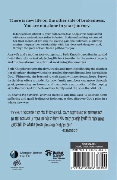 Beyond the Rainbow is Beth Knopik's account of a parent's sudden and heartbreaking loss of their child, one that supports those in the early stages of grief, explains how to navigate the aftermath of loss and rediscover meaning, and redefines the meaning of death.