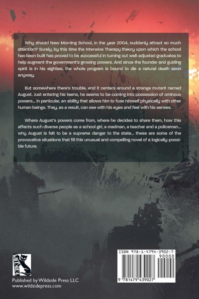 Why should New Morning School, in the year 2004, suddenly attract so much attention? Surely, by this time the Intensive Therapy theory upon which the school has been built has proved to be successful in turning out well-adjusted graduates to help augment the government's growing powers. And since the founder and guiding spirit is in his eighties, the whole program is bound to die a natural death soon anyway. But somewhere there's trouble, and it centers around a strange mutant named August. Just entering his teens, he seems to be coming into possession of ominous powers... in particular, an ability that allows him to fuse himself physically with other human beings. They, as a result, can see with his eyes and feel with his senses. Where August's powers come from, where he decides to share them, how this affects such diverse people as a school girl, a madman, a teacher and a policeman... why August is felt to be a supreme danger to the state... these are some of the provocative situations that fill this unusual and compelling novel of a logically-possible future.