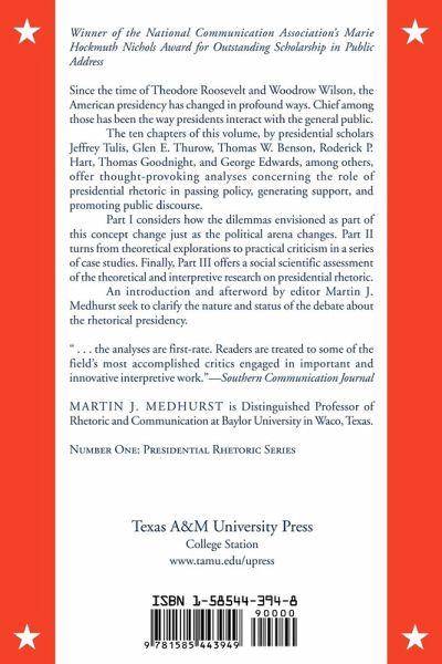 The ten chapters of this volume, by presidential scholars Jeffrey Tulis, Glen E. Thurow, Thomas W. Benson, Roderick P. Hart, Thomas Goodnight, and George Edwards, among others, offer analyses concerning the role of presidential rhetoric in passing policy, generating support, and promoting public discourse.