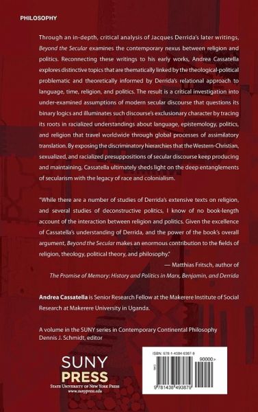 Investigates, through a critical exploration of Derrida's political thought, the foundations of modern secular discourse in relation to issues of race and colonialism.