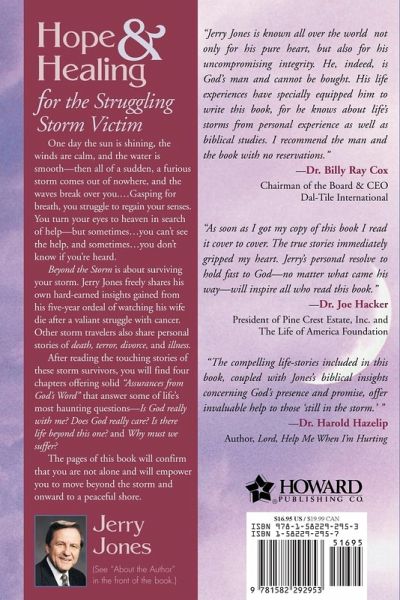 One day the sun is shining, the winds are calm, and the water is smooth -- then all of a sudden, a furious storm comes out of nowhere, and the waves break over you and knock you off your feet. Grasping for breath, you struggle to regain your senses. You turn your eyes to heaven in search of help -- but sometimes...you can't see the help, and sometimes...you don't know if you're heard. This book is written by and for storm travelers. This book is about surviving the storm. To help you survive your storm, Jerry Jones freely shares his own hard-earned insights gained from his five-year ordeal of watching his wife die after a valiant struggle with cancer. Other storm travelers also share personal stories of death, terror, divorce, and illness. Together, these Voices from the Storm confirm that you are not alone in your heartache, and their struggles and victories assure you that there is a path that leads to the peaceful shore. After reading the touching stories of these storm survivors, you will find four chapters offering solid, "Assurances from God's Word" that answer some of life's most haunting questions -- Is God really with me? Does God really care? Is there life beyond this one? and Why must we suffer? The pages of this book will fill you with comfort and will empower you with strength and fortitude to survive and move beyond the storm.