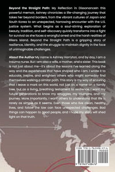In this powerful memoir, Ashney chronicles a life-changing journey that takes her beyond borders, from the vibrant cultures of Japan and South Korea to an unexpected, harrowing encounter with the U.S. justice system. What begins as a soul-stirring exploration of beauty, tradition, and self-discovery quickly transforms into a fight for survival as she faces a wrongful arrest and the harsh realities of Rikers Island. Beyond the Straight Path is a gripping story of resilience, identity, and the struggle to maintain dignity in the face of unimaginable challenges.