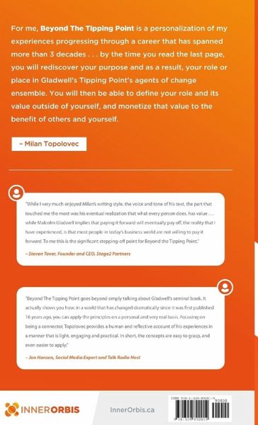 Beyond the Tipping Point will likely bring to mind Malcolm Gladwell's seminal book, and the lessons that you have tried to apply in your daily life. However, while Gladwell implies that paying it forward will eventually pay off, the reality is that most people in today's business world are not willing to pay it forward. This book takes you Beyond The Tipping Point, by not only showing you how to build relationships, but how you can make them work to the mutual benefit of all stakeholders - including yourself.