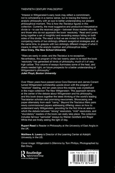 Over fifteen years have passed since Cora Diamond and James Conant turned Wittgenstein scholarship upside down with the program of "resolute" reading, and ten years since this reading was crystallized in the major collection The New Wittgenstein. This approach remains at the center of the debate about Wittgenstein and his philosophy, and this book draws together the latest thinking of the world's leading Tractatarian scholars and promising newcomers. Showcasing one piece alternately from each "camp", Beyond the Tractatus Wars pairs newly commissioned pieces addressing differing views on how to understand early Wittgenstein, providing for the first time an arena in which the debate between "strong" resolutists, "mild" resolutists and "elucidatory" readers of the book can really take place. The collection includes famous "samizdat" essays by Warren Goldfarb and Roger White that are finally seeing the light of day.