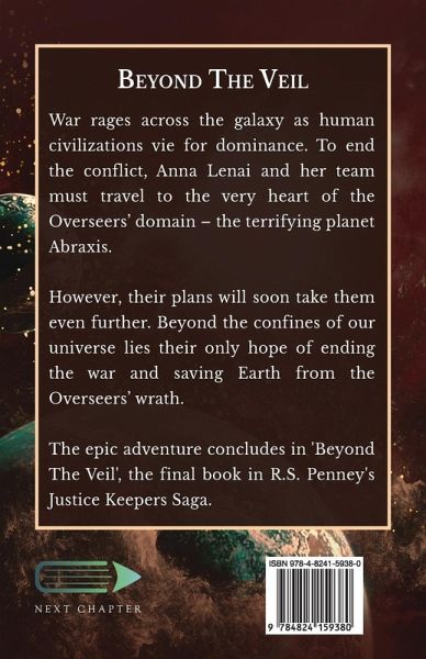 War rages across the galaxy as human civilizations vie for dominance. To end the conflict, Anna Lenai and her team must travel to the very heart of the Overseers' domain - the terrifying planet Abraxis. However, their plans will soon take them even further. Beyond the confines of our universe lies their only hope of ending the war and saving Earth from the Overseers' wrath. The epic adventure concludes in 'Beyond The Veil', the final book in R.S. Penney's Justice Keepers Saga.
