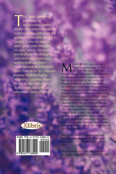 Munia Khan was born on a spring night of 15th March in the year 1981. She is the author of four poetry collections : 'Beyond The Vernal Mind' (Published by Xlibris, USA, 2012), 'To Evince The Blue' (Published by Xlibris USA, 2014),and 'Versified' (Published from Tel Aviv, Israel, 2016 by Tiktakti Publishing), Fireclay(Published by Rushmore Press, Las Vegas, USA, 2020) Her ever first inspirational non-fiction is called "Attainable", published by Authors' Place Press, CO, USA, 2020. Her works have been translated into various languages: Japanese, Romanian, Urdu,Italian, Dutch, Croatian, Spanish, Portuguese, Russian, Albanian, Finnish, Greek, Indonesian, Hindi, Turkish, Arabic, Bengali and in Irish language so far. Her poetry has been published in several anthologies, literary journals, magazines and in newspapers. Her words have been inscribed on a commemorative plaque which stands in the grounds of Holy Trinity Church at Holy Trinity Heritage Centre at Carlingford, Ireland as a tribute to those lost in the collision of the SS Connemara and the SS Retriever in 1916. . Her quote has also been inscribed on a memorial plaque (in tribute to the Hannah shipwreck victims in 1849) beside Newry Canal one hundred metres from the town centre in Newry, Ireland.