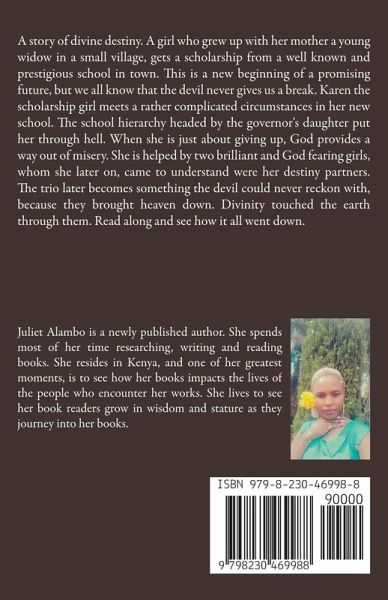 A story of divine destiny. A girl who grew up with her mother a young widow in a small village, gets a scholarship from a well known and prestigious school in town. This is a new beginning of a promising future, but we all know that the devil never gives us a break. Karen the scholarship girl meets a rather complicated circumstances in her new school. The school hierarchy headed by the governor's daughter put her through hell. When she is just about giving up, God provides a way out of misery. She is helped by two brilliant and God fearing girls, whom she later on, came to understand were her destiny partners. The trio later becomes something the devil could never reckon with, because they brought heaven down. Divinity touched the earth through them. Read along and see how it all went down.