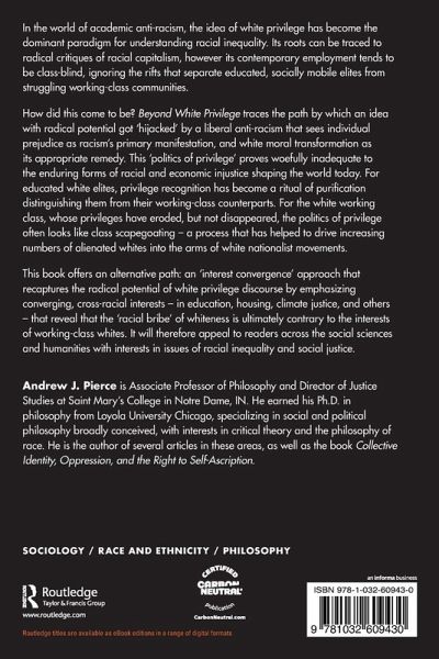 How did this come to be? Beyond White Privilege traces the path by which an idea with radical potential got 'hijacked' by a liberal anti-racism that sees individual prejudice as racism's primary manifestation, and white moral transformation as its appropriate remedy. This 'politics of privilege' proves woefully inadequate to the enduring forms of racial and economic injustice shaping the world today. For educated white elites, privilege recognition has become a ritual of purification distinguishing them from their working-class counterparts. For the white working class, whose privileges have eroded, butnot disappeared, the politics of privilege often looks like class scapegoating - a process that has helped to drive increasing numbers of alienated whites into the arms of white nationalist movements.