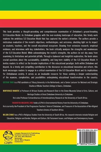 This book provides a thought-provoking and comprehensive examination of Zimbabwe's ground-breaking 5.0 Education Model. As Zimbabwe grapples with the ever-evolving landscape of education, this timely work explores the ambitious 5.0 Education Model that has captured the nation's attention. The authors provide a meticulous evaluation of the model's objectives, methodologies, and outcomes, shedding light on its impact on students, teachers, and the overall educational ecosystem. Drawing from extensive research, empirical evidence, and interviews with key stakeholders, the book critically analyses the strengths and weaknesses of the 5.0 Education Model. While acknowledging the model's strengths, the authors do not shy away from examining its limitations and potential pitfalls. Through a balanced and insightful exploration, the book raises crucial questions about the sustainability, scalability, and long-term viability of the 5.0 Education Model. It invites readers to reflect on the broader implications of this educational paradigm, both within Zimbabwe and beyond. As a timely and compelling contribution to the discourse on educational innovation and reform, this book encourages readers to engage in a critical examination of the 5.0 Education Model and its implications for Zimbabwean society. It serves as an invaluable resource for those seeking a deeper understanding of the nuances, complexities, and possibilities underpinning educational transformation in the country.