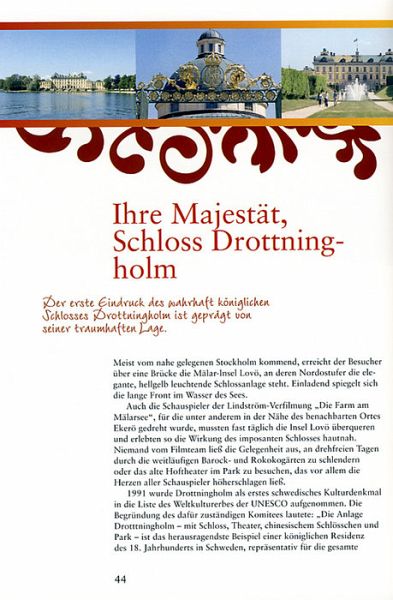 Tiefblaue klare Seen, von Birkenwäldern umsäumt, unberührte Fjorde, der Schärengarten vor Stockholm mit seinen unzähligen Inselparadiesen, heimelige rote und gelbe Holzhäuser - dies ist das idyllische Schweden, wie es Millionen von Zuschauern aus den Inga-Lindström-Filmen des ZDF kennen und lieben. Wer wünscht sich nicht an jene Orte von wild-romantsicher Schönheit, die Schauplätze der bewegenden Liebesgeschichten sind? Dieses Buch lädt mit viele stimmungsvollen Bildern dazu ein, eine Reise durch das Sehnsuchtsland Schweden zu unternehmen. Das berühmte Schloss Gripsholm und die anderen Schlösser am Märlasee gehören ebenso dazu wie die liebliche Provinz schonen, die beeindruckende Landschaft Dalarnas, der Göta-Kanal mit seinen alten Passagierdampfen, die Fischerdörfer an der Küste und natürlichen Stockholm, das "Venedig des Nordens", mit seinen zauberhaften Schären.