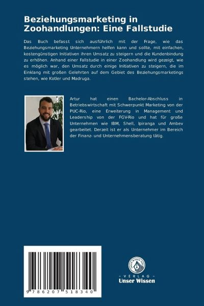 Das Buch befasst sich ausführlich mit der Frage, wie das Beziehungsmarketing Unternehmern helfen kann und sollte, mit einfachen, kostengünstigen Initiativen ihren Umsatz zu steigern und die Kundenbindung zu erhöhen. Anhand einer Fallstudie in einer Zoohandlung wird gezeigt, wie es möglich war, den Umsatz durch einige Initiativen zu steigern, die im Einklang mit großen Gelehrten auf dem Gebiet des Beziehungsmarketings stehen, wie Kotler und Madruga.