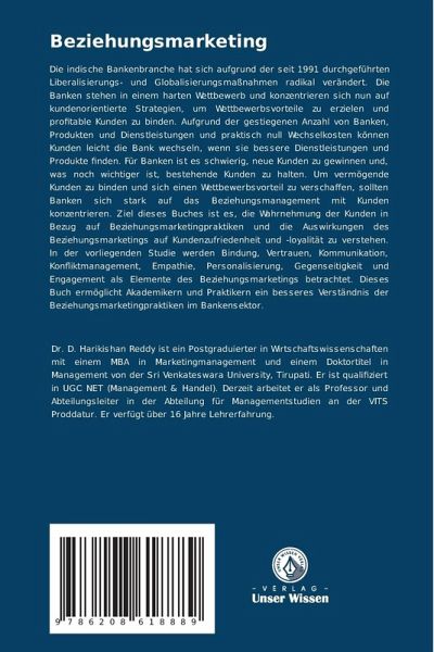 Die indische Bankenbranche hat sich aufgrund der seit 1991 durchgeführten Liberalisierungs- und Globalisierungsmaßnahmen radikal verändert. Die Banken stehen in einem harten Wettbewerb und konzentrieren sich nun auf kundenorientierte Strategien, um Wettbewerbsvorteile zu erzielen und profitable Kunden zu binden. Aufgrund der gestiegenen Anzahl von Banken, Produkten und Dienstleistungen und praktisch null Wechselkosten können Kunden leicht die Bank wechseln, wenn sie bessere Dienstleistungen und Produkte finden. Für Banken ist es schwierig, neue Kunden zu gewinnen und, was noch wichtiger ist, bestehende Kunden zu halten. Um vermögende Kunden zu binden und sich einen Wettbewerbsvorteil zu verschaffen, sollten Banken sich stark auf das Beziehungsmanagement mit Kunden konzentrieren. Ziel dieses Buches ist es, die Wahrnehmung der Kunden in Bezug auf Beziehungsmarketingpraktiken und die Auswirkungen des Beziehungsmarketings auf Kundenzufriedenheit und -loyalität zu verstehen. In der vorliegenden Studie werden Bindung, Vertrauen, Kommunikation, Konfliktmanagement, Empathie, Personalisierung, Gegenseitigkeit und Engagement als Elemente des Beziehungsmarketings betrachtet. Dieses Buch ermöglicht Akademikern und Praktikern ein besseres Verständnis der Beziehungsmarketingpraktiken im Bankensektor.