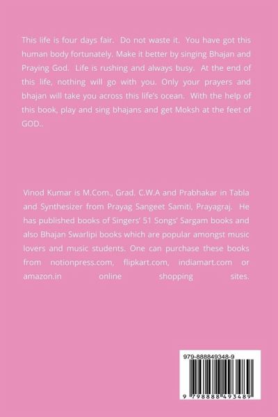 This life is four days fair. Do not waste it. You have got this human body fortunately. Make it better by singing Bhajan and Praying God. Life is rushing and always busy. At the end of this life, nothing will go with you. Only your prayers and bhajan will take you across this life's ocean. With the help of this book, play and sing bhajans and get Moksh at the feet of GOD.
