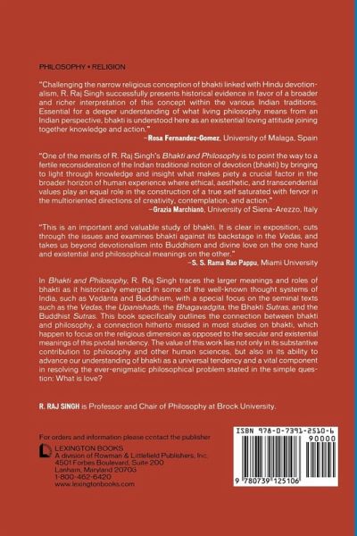 Bhakti is a remarkable feature and tendency of human existence having to do with one's devoted involvement with a person, object, deity, or a creative project. Bhakti and Philosophy aims to trace the larger meanings and roles of bhakti as it historically emerged in some of the well-known thought systems of India, such as Vedanta and Buddhism.