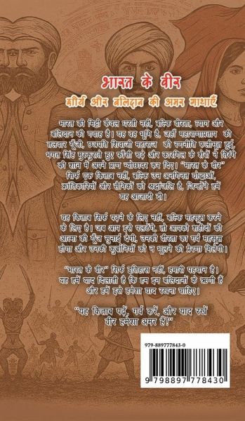 "Bharat Ke Veer: A Tribute to Courage, Sacrifice, and Patriotism" India's soil is not just land; it is a witness to bravery, sacrifice, and valor. This is the land where Rana Pratap's sword roared, Chhatrapati Shivaji's strategies triumphed, Shaheed Bhagat Singh smiled on the gallows, and the lions of Kargil laid down their lives for the honor of the tricolor. "Bharat Ke Veer" is not just a book; it is a tribute to the countless warriors, revolutionaries, and soldiers who gifted us this freedom. Each page of this book carries the tears of a mother, the silence of a father, and the longing of a child. It makes us feel the pain of those families who, despite losing their beloved sons, held their heads high with pride. From the soil of Haldighati to the icy peaks of Kargil, every battle, every struggle, and every sacrifice comes alive in these pages. This book is not just meant to be read; it is meant to be felt. As you turn its pages, you will hear the echoes of the martyrs' souls, feel the pride of their bravery, and be inspired never to forget their sacrifices. "Bharat Ke Veer" is not just history; it is our identity. It reminds us that we are indebted to these sacrifices, and we must always honor them. "Read this book, take pride, and remember-our heroes are immortal!"