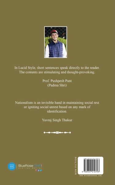 The book is an effort of a twenty year old boy Yuvraj Singh Thakur, who tries to pave his way of ideas, amidst of the political, cultural and regional changes. The book talks about the idea of nationalism of Bharat through the eye of a young brain. The book argues to follow the Indic ideas over the Western ideas, it also provides disagreement to the idea of secularism rather emphasis over the culture of Vasudeva Kutumbkam. Also the book talks about the author's disagreement to the idea of "Ganga Jamuni Tehzeeb''. The idea that "our identities are to a large extent shaped by the nation state. The thin lines dividing Nationalism, Patriotism and Chauvinism are often blurred. We look at the world primarily in terms of diverse nationalities and people we interact with are categorised as 'We' and 'They'. We define friends and enemies and neutral alliance accordingly", is the core of book. In this monograph Yuvraj has made a serious effort to find his way through a bewiildring maze of ideas, historical events, comments made by others scholars to get a grasp of what Nationalism means.