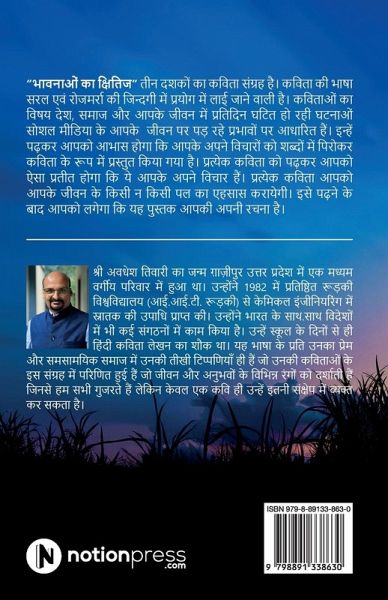 "Bhavnayon ka Kshitiz" is a collection of poems spanning three decades. The language of poetry is simple and can be used in everyday life. The theme of the poems is based on the daily events happening in the country, society and your life and the impact of social media on your life. After reading these, you will feel that your own thoughts have been put into words and presented in the form of poetry. After reading each poem, you will feel that these are your own thoughts. Each poem will make you feel some moment of your life. After reading it you will feel that this book is your own creation.