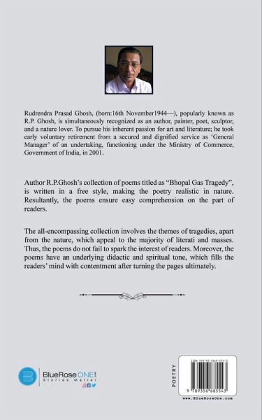 ""Author R.P.Ghosh's collection of poems titled as """"Bhopal Gas Trgaedy"""", is written in a free style, making the poetry realistic in nature. Resultantly, the poems ensure easy comprehension on the part of readers. The all- encompassing collection involves the themes of tragedies, apart from the nature, which appeal to the majority of literati and masses. Thus, the poems do not fail to spark the interest of readers. Moreover, the poems have an underlying didactic and spiritual tone, which fills the reader's mind with contentment after turning the pages ultimately. ""